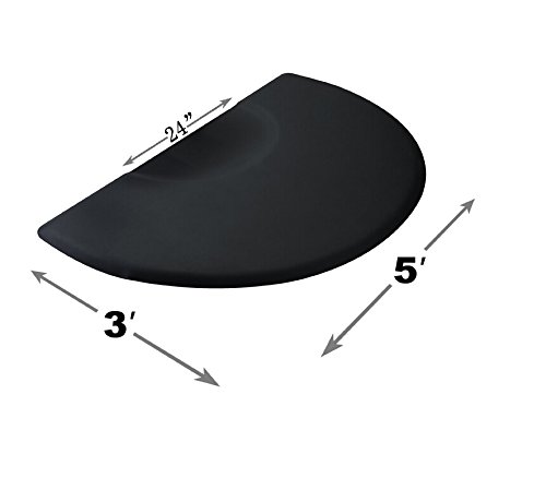 These anti-fatigue mats are extremely comfortable. Made of high density foam, they allow you to work long hours with little stress on your joints and feet. Use them with barber chairs, salon chairs, shampoo stations, or any workstation where employee comfort is needed. The matte black waterproof surface is easy to wipe-clean and sweep, and makes getting ready for your next client a breeze. They are commercial-grade and extremely durable, resisting punctures and tears from dropped equipment and rolling carts, and can also be used under high heels. Crafted with safety in mind, they feature an anti-slip texture as well as edges that taper to the floor to prevent tripping. A large 3' x 5' area allows you to work around a client while staying on the mat, and the depression will fit standard chairs with a round base 24" in diameter. This mat choice is 1/2" thick.Feature