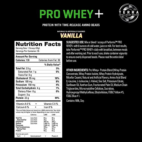 TRI-PHASE AMINO RELEASE: PERFORMIX PRO WHEY+ is infused with a dynamic blend of BCAA's and our exclusive PERFORMIX ISO beads. TERRA Intelligent Dosing ensures a steady stream of aminos for a feeling of power you can tap into whenever you need it.