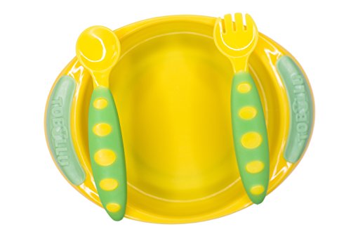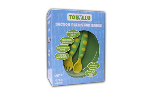 -. Feature : No more spills - TOBYLLU plate has a strong suction, non-skid base, which prevents spills / TOBYLLU forks and spoons are ergonomically designed for a comfortable hold and helps to learn how to self feed / Top quality, made with love and safe, BPA-free plastics that are safe for baby to chew on / Easy to clean, top rack dishwasher safe / 2 years warranty