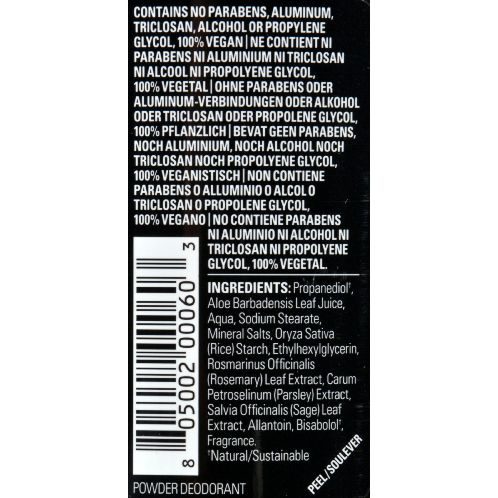 | Herban Cowboy Deodorant Powder Scent Description: Natural For Her by Herban Cowboy Maximum Protection No Parabans No Propylene Glycol No Aluminum No Alcohol No Triclosan 100% Vegan Free Of Parabens, aluminum, triclosan, alcohol and propylene glycol. Disclaimer These statements have not been evaluated by the FDA. These products are not intended to diagnose, treat, cure, or prevent any disease. Ingredients : INGREDIENTS Deodorant: Propanediol, Aqua, Silver, Sodium Stearate, Ethylhexylglycerin, Sodium Bicarbonate, Mineral Salts, Dipotassium Glycyrrhizate, Rosmarinus Of?cinalis (Rosemary) Leaf Extract, Carum Petroselinum (Parsley) Extract, Salvia Of?cinalis (Sage) Leaf Extract, Aloe Barbadensis Leaf, Zinc Gluconate, Allantoin, Fragrance. Corn Derived Food Grade Vegan : Yes Size : 2.8 OZ Pack of : 1 Product Selling Unit : each |