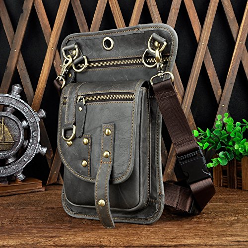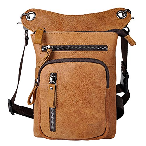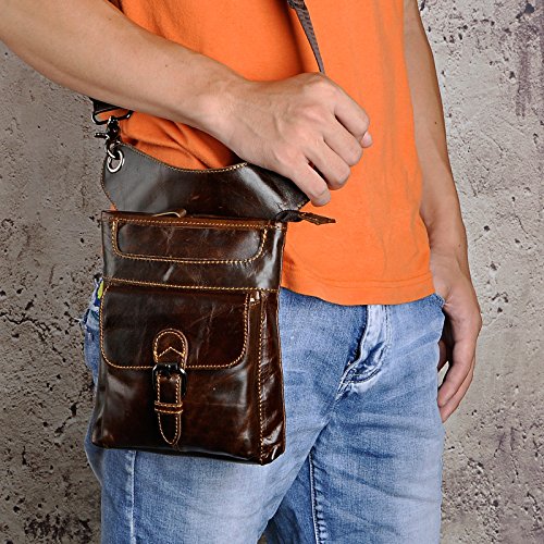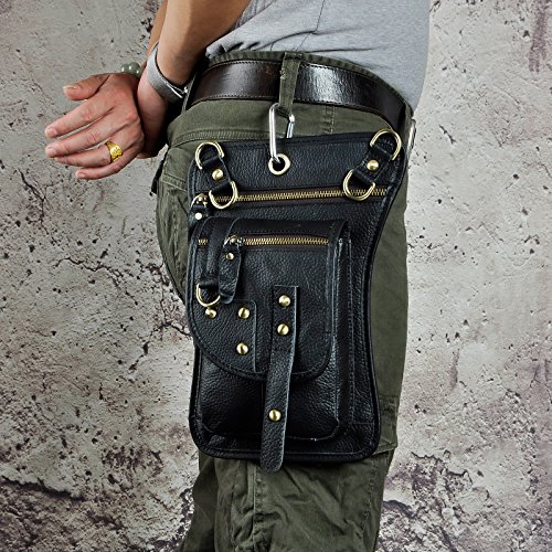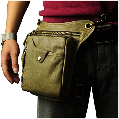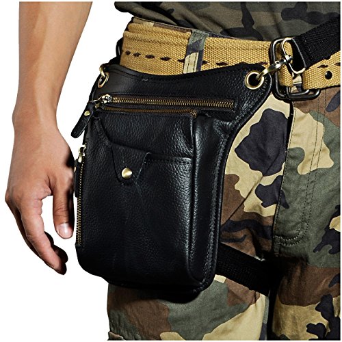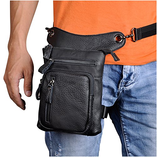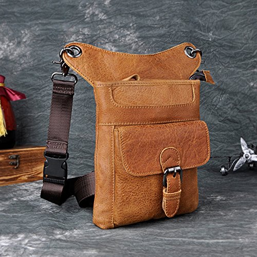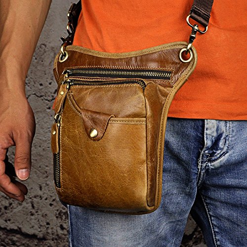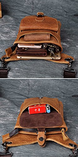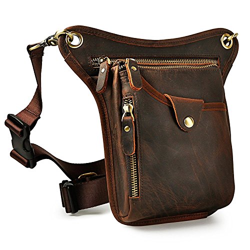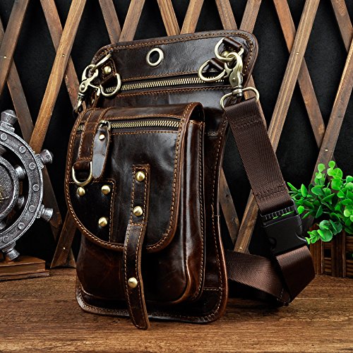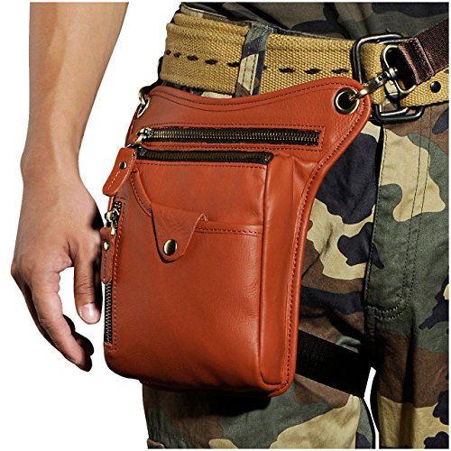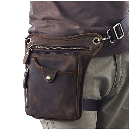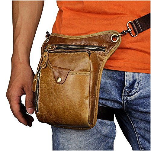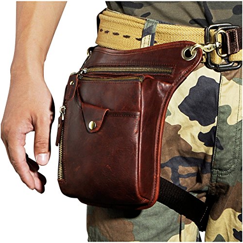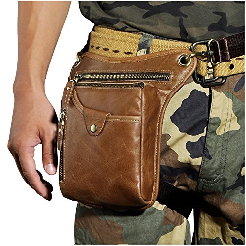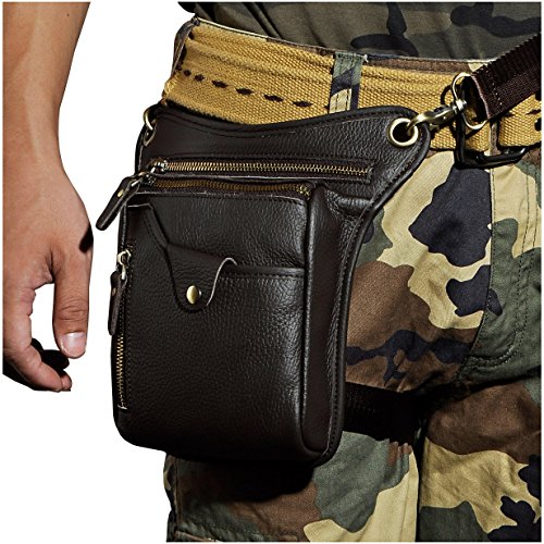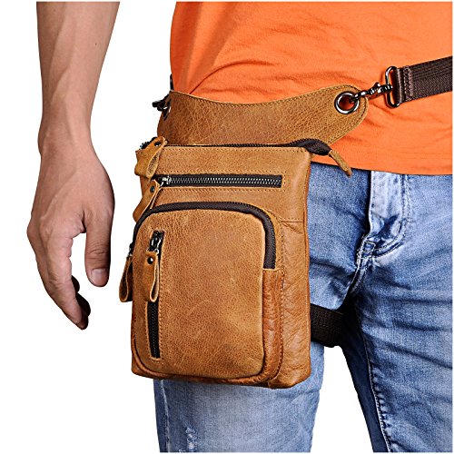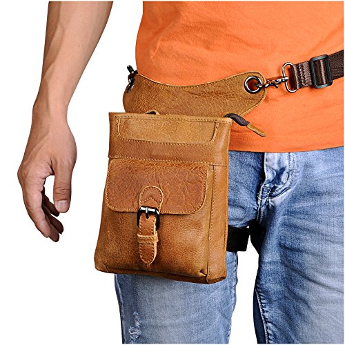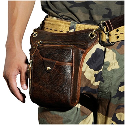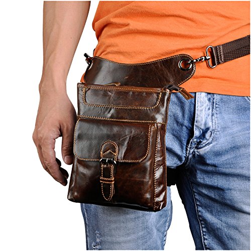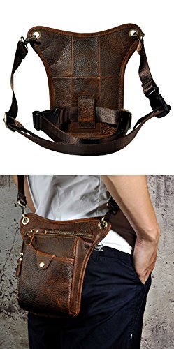 | (Le'aokuu)/Accessories/Luggage, Bags Travel/DIRECT FROM USA/Le'aokuu Mens Genuine Leather Hip Bum Waist Belt Pack Drop Leg Cross Over Bag |