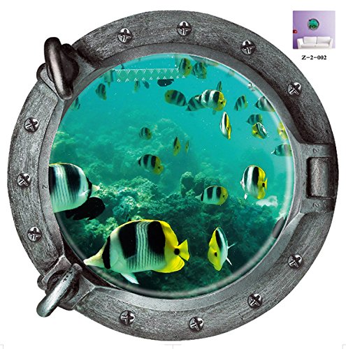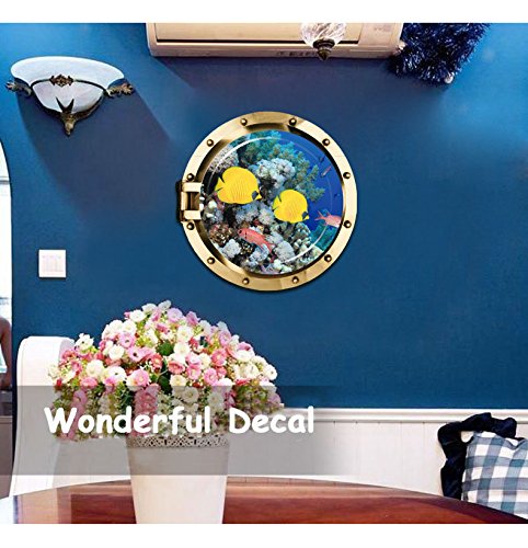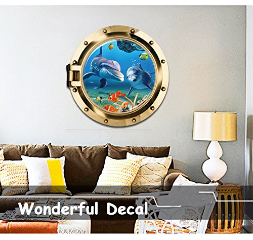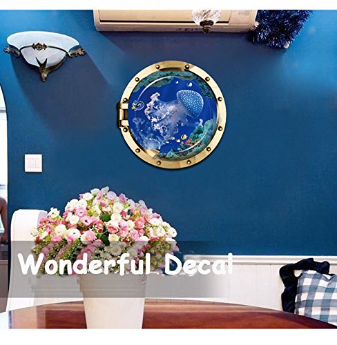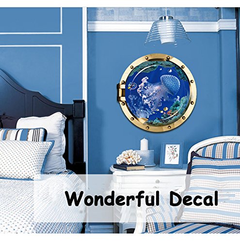 -. Title : Homefind 19.7"x 19.7" 3D High Definition Submarine Porthole View Of Ocean Undersea World Wall Stickers Peel & Stick Removable Vinyl Murals Decals for Kids Room Bedroom Nursery