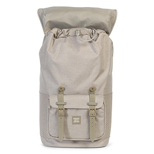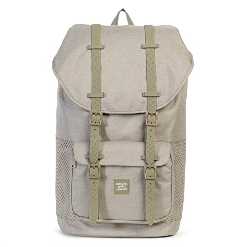 Herschel Little America Backpack in Dark Khaki Crosshatch an iconic Herschel Supply silhouette. Featuring signature striped fabric liner, air mesh back padding, and contoured shoulder straps.