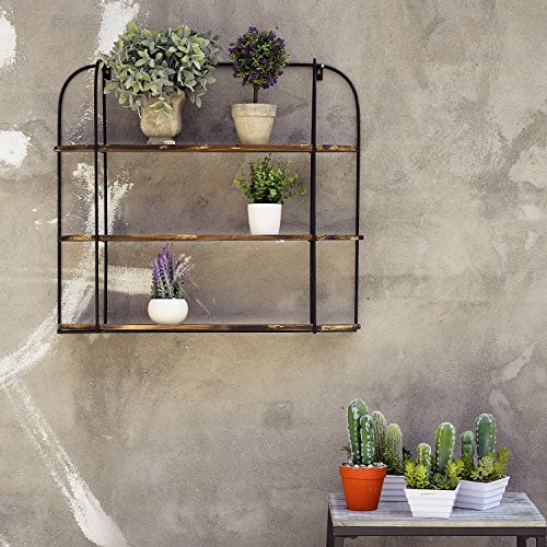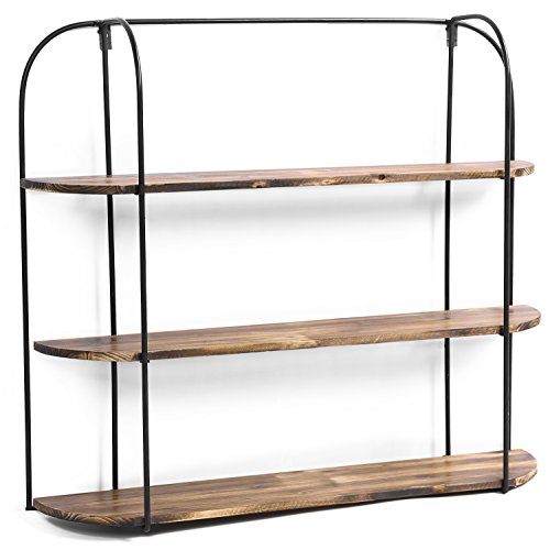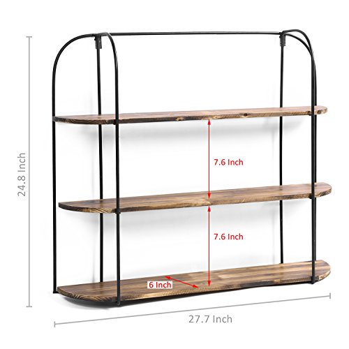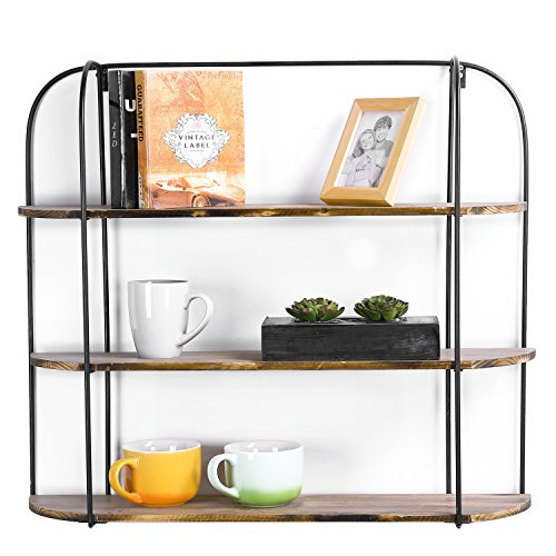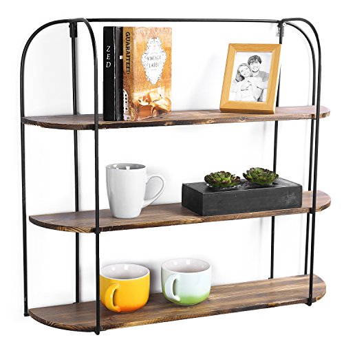 MyGift 3-Tier Wall Mounted Industrial Rustic Wooden Shelving Display Rack