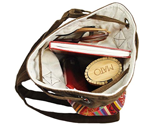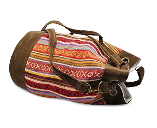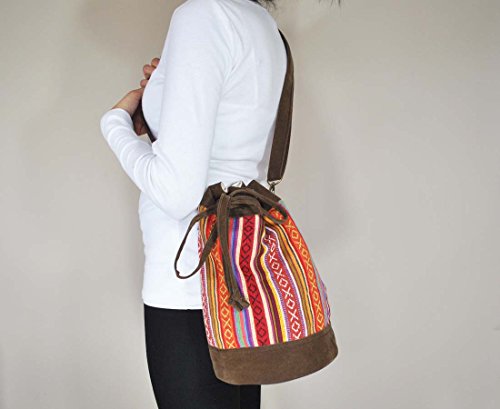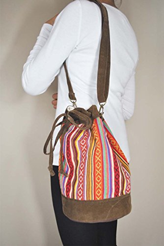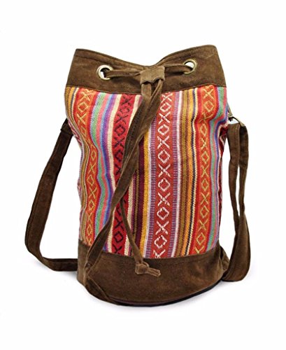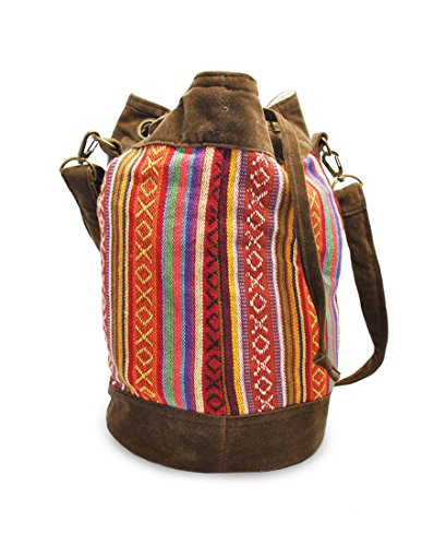 Mato Boho Drawstring Bucket Bag Bohemian Woven Tribal Aztec Baja Pattern Crossbody Shoulder Side Purse Suede