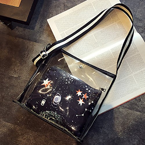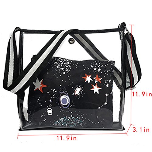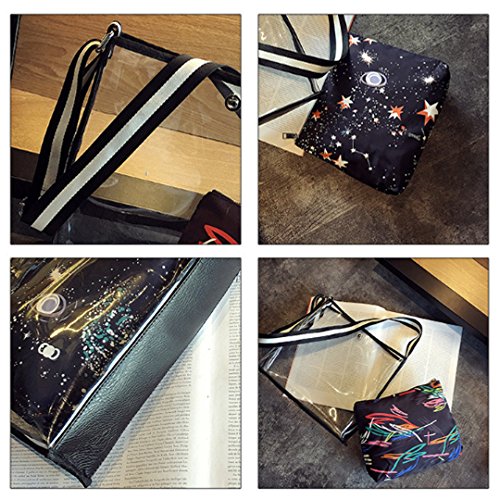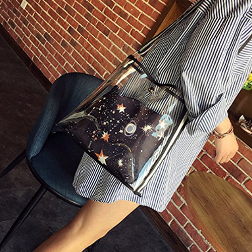 Clear Two Piece Beach Tote Purse PVC Waterproof Beach Shoulder Bag with Interior Pocket (starry sky)