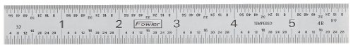 Fowler 52-330-006 Rigid Steel Rule with Satin Chrome Finish, 4R Graduation Interval, 6" L x 0.75" W x 0.04" Thick