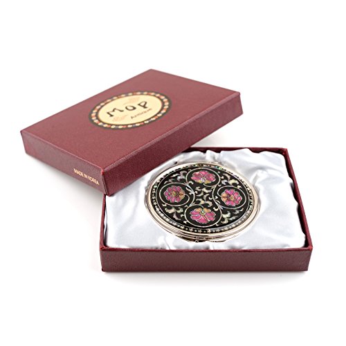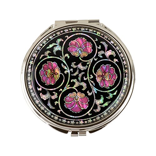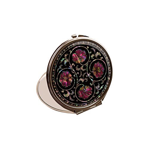 Round Compact Magnifying Make up Double sided Mirror Mother Of Pearl Art Ivy Flower