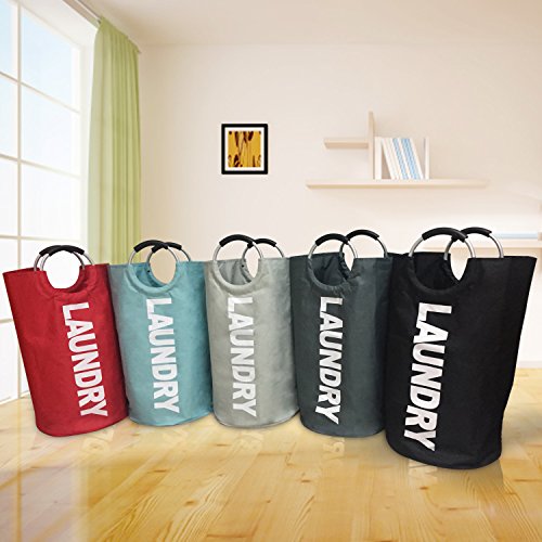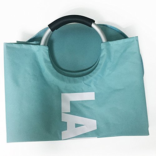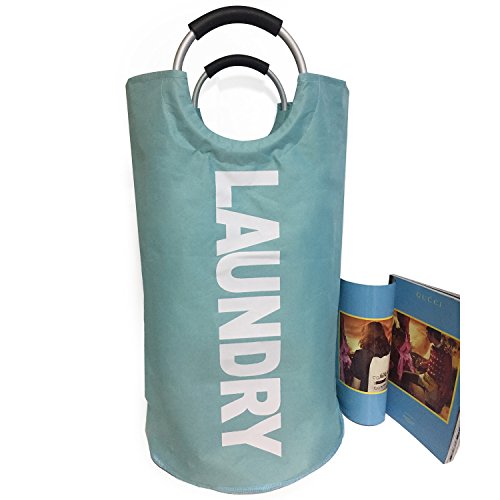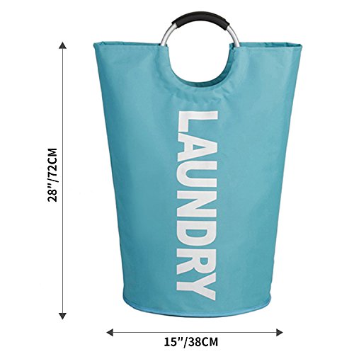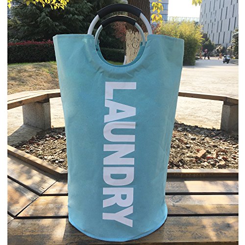 Large Laundry Basket, Oxford Collapsible Laundry Bag for Delicates, Round Aluminum Handles for Easy to Carry, Available in 5 Colors Dia.15" x H28" (Light Blue)