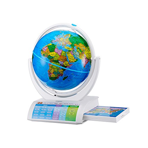 Learning globe that features a wireless Bluetooth pen. The globe is removable to open in half, for Earth's inner core and solar system information.