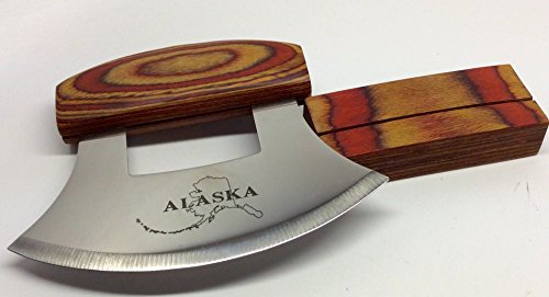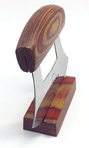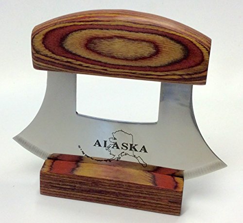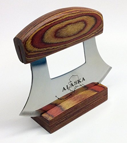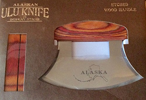 Alaska Ulu Knife Natural Exotic Wood Stand Etched Blade