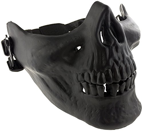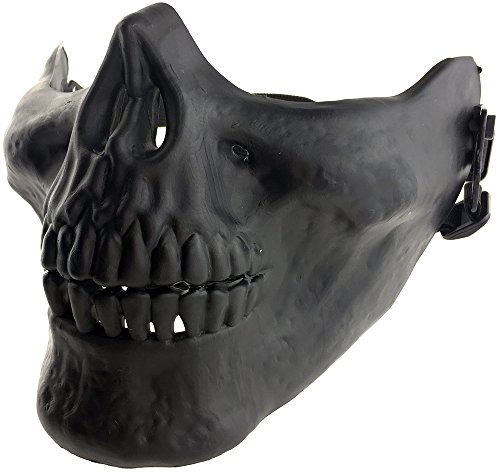 -. Binding : Misc. -. Brand : SportPro -. Color : Black -. EAN : 6081499599910 -. Feature : • Super Light and Impact Resistant / • Adjustable Head Straps / • Padded Head Strap for Extra Comfort / • Mesh Lenses don't get Fogged Up / • Rubber Padded Inside for Increased Comfort -. IsAutographed : 0 -. IsMemorabilia : 0 -. Label : CM -. Manufacturer : CM -. ProductGroup : Sports -. ProductTypeName : SPORTING_GOODS -. Publisher : CM -. Studio : CM -. Title : SportPro M03 Skull Skeleton Half Face Mask for Airsoft - Black