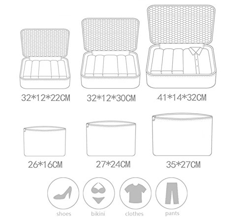 Luggage Bag for Travel-3 Cube: The large cube is able to fit 5 outfits including two pairs of jeans, two pairs of shorts, 4 shirts, a dress. The medium cube is able to fit 4 dresses and a cardigan. The smallest cube is able to fit your underwear,bras, 2 nighties and socks for your trip