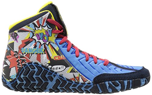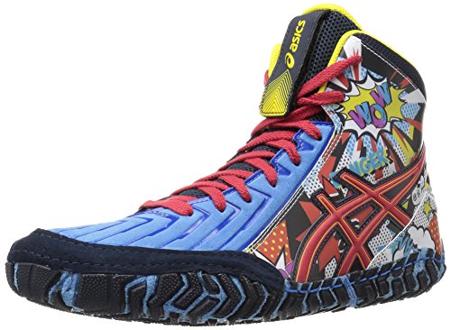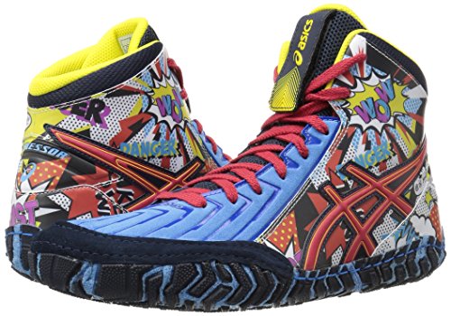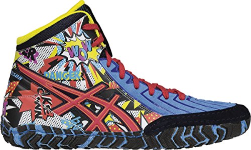 Studio : ASICS America Corporation Publisher : ASICS America Corporation Binding : Apparel Product Description Designed with durability in mind, the new aggressor® 3 wrestling shoe is the best fitting and most durable wrestling shoe on the market. The newly redesigned super suede Ecsaine2 upper construction is durable, comfortable and provides an excellent fit. In addition to the exceptional fit, the breathable single layer mesh tongue features a less bulky version of our integrated lace garage for ultimate comfort. The aggressive outsole® outsole has molded teeth to ensure the well-balanced combination of grip and flexibility that continues to make this shoe popular among wrestling enthusiasts. The aggressor l.E. Comic-hero shoe brings the excitement and color, offering an all-over color story that is sure to get the wrestler noticed. In addition to the impressive coloring, the upper features a comic Book theme with inspiration from wrestling expressions such as: “beast”, “cradle”, “bring the heat”, “takedown” and “Slam”. go from zero to hero in this comic Book inspired offering. 0