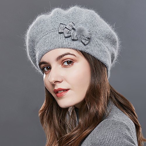 SOMALER Winter Women French Beret 100% Angora Wool Beret Beanie
