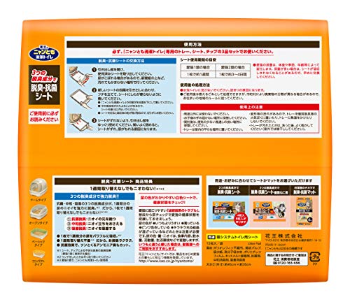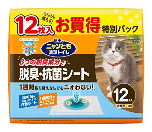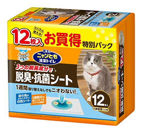 抗菌・中和・吸着の3つの脱臭成分が、1週間分の尿のニオイを強力に脱臭*1。1週間取り替えなしでもニオわない*2! 抗菌効果で、ツンとくるアンモニア臭もカットします。 1枚で1週間分の尿をパワフルに吸収*1。 1週間取り替え不要*1だから、お掃除ラクラクです。 尿の色がわかりやすい白色シートで、健康状態をチェックできます。 燃えるごみとして処理できます*3。 *1 愛猫1頭で、ニャンとも清潔トイレ使用時 *2 シート、チップによる不快な尿臭の脱臭効果(愛猫1匹に使用する場合)。ウンチをした時は早く取り除いてください *3 市町村により廃棄物の分類が異なる場合があるので、お住まいの地域のルールに従ってください 商品に関するお問合せ・ご意見は「花王消費者相談室」0120-165-696 受付時間:9:00~17:00(土・日・祝日は除く)