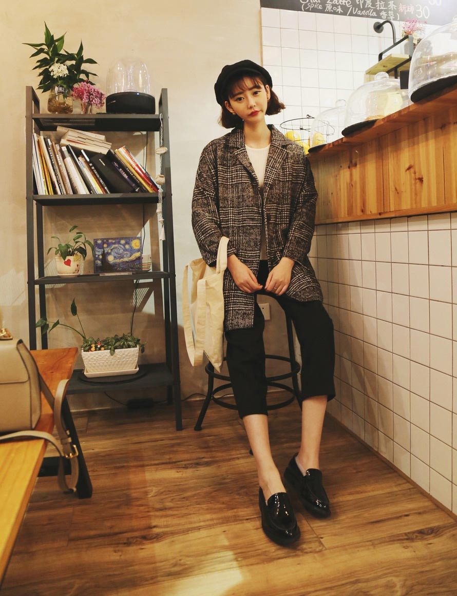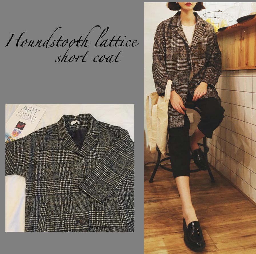 トレンドのレトロな千鳥格子ショート丈シングルボタンチェスターコート♪