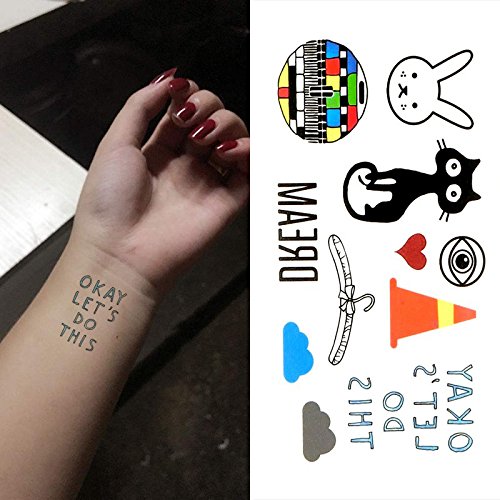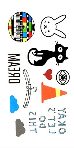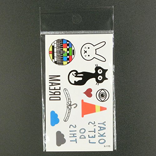 Oottati Small Cute Temporary Tattoo Cat Rabbit Tv Dream Cloud Heart (2 Sheets)