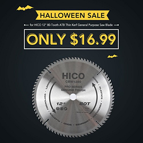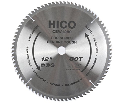 HICO 12" 80-Tooth ATB Thin Kerf General Purpose Saw Blade with 1-Inch Arbor