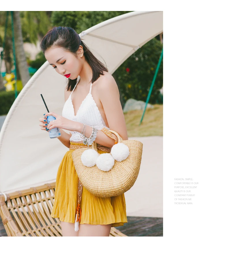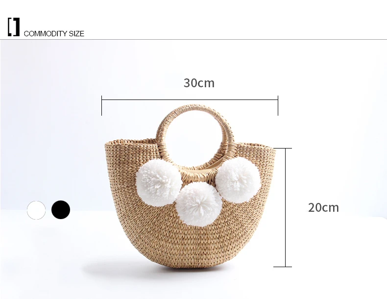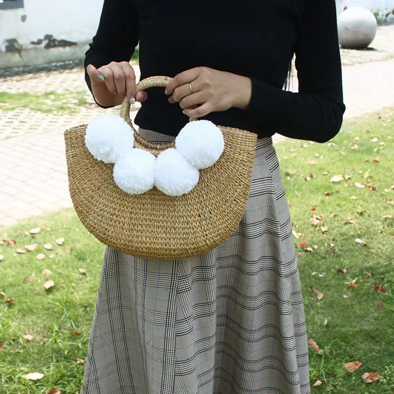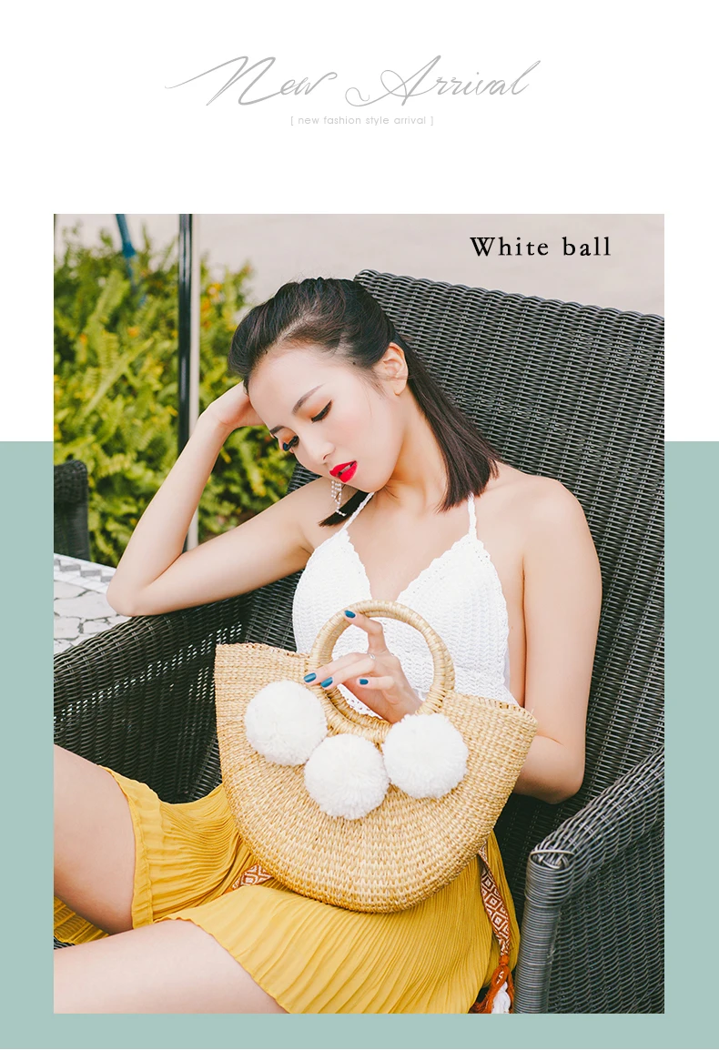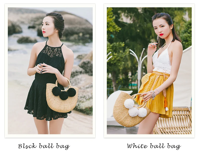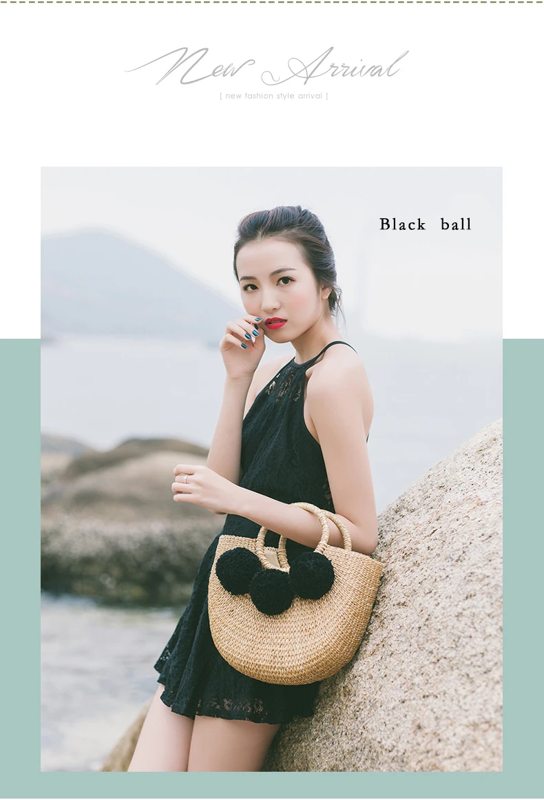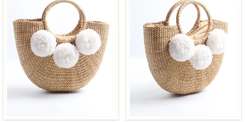 Feature 1:New Summer andmade Bags Women Pompon Beach Weaving Ladies Straw Bag