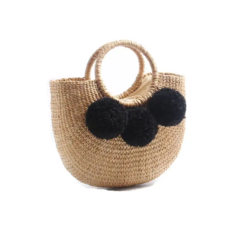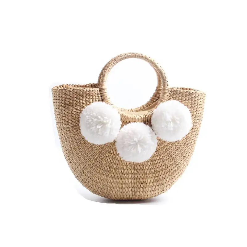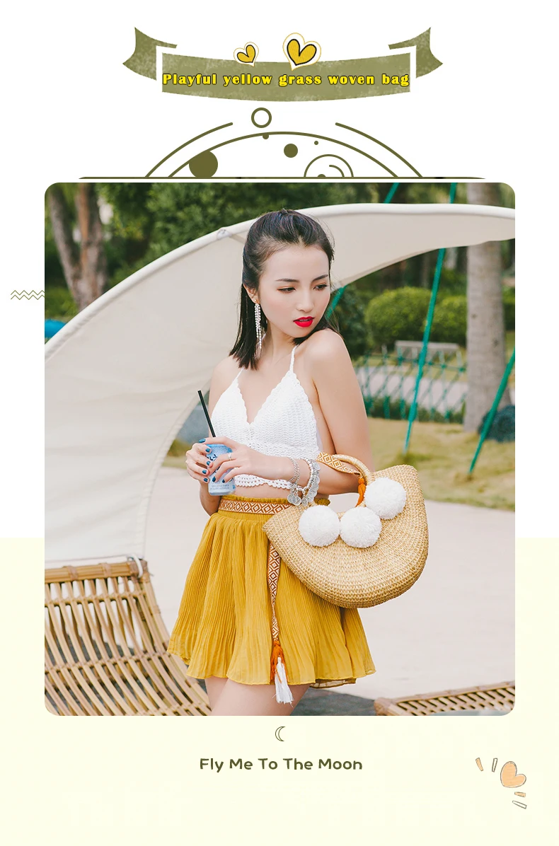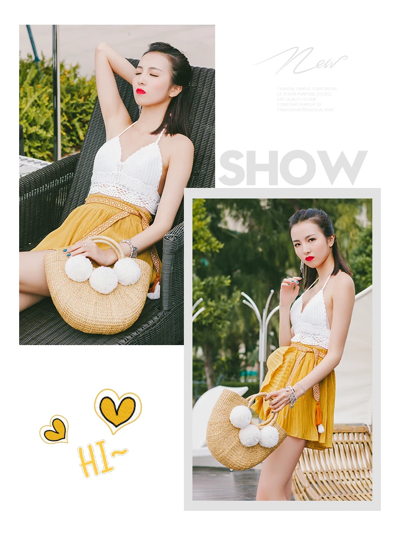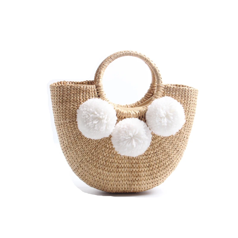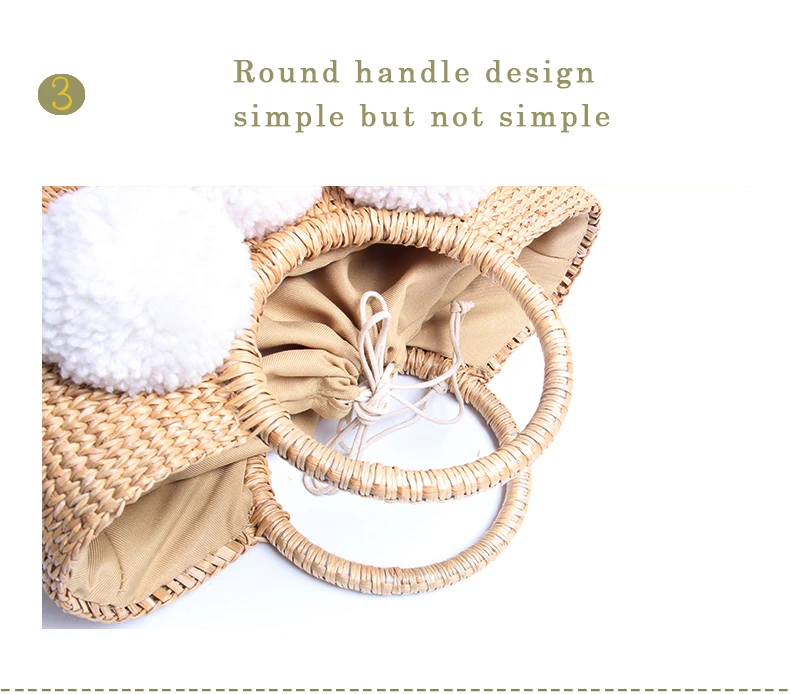 Feature 1:New Summer andmade Bags Women Pompon Beach Weaving Ladies Straw Bag