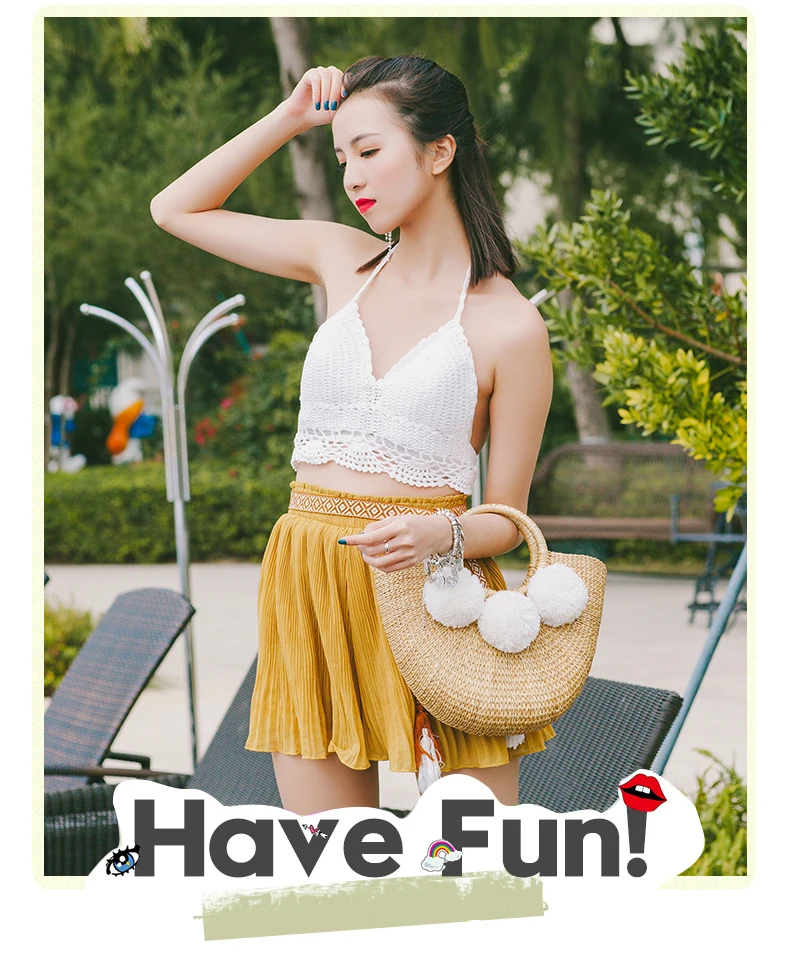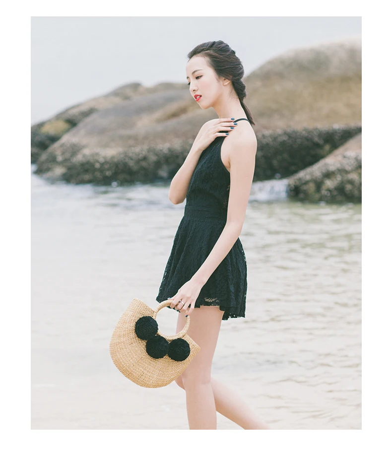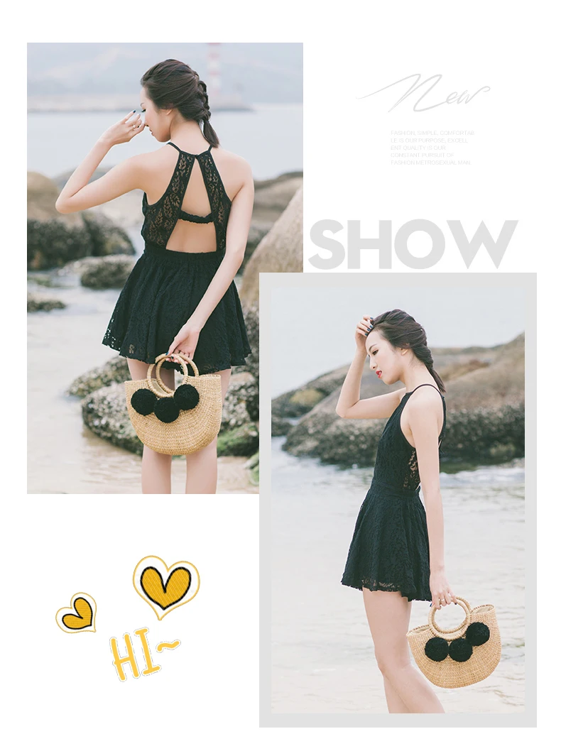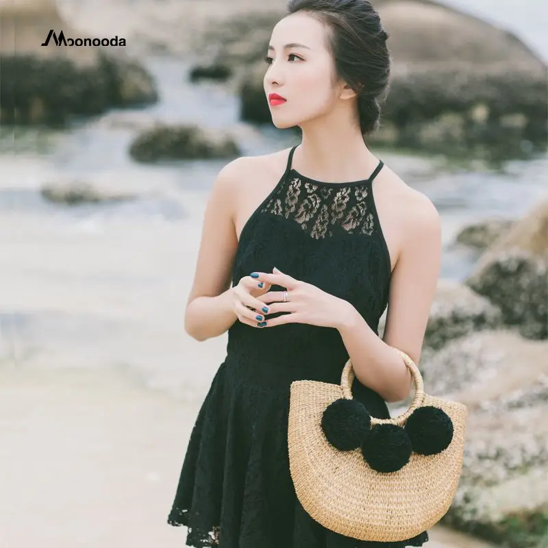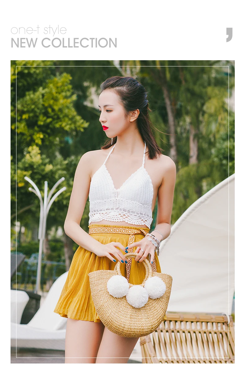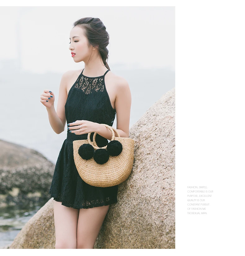 Feature 1:New Summer andmade Bags Women Pompon Beach Weaving Ladies Straw Bag
