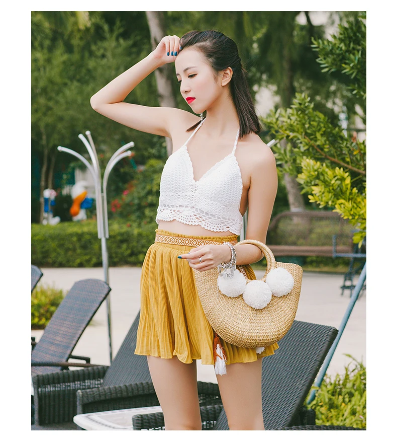 Pattern :Straw Wrapped Balls Hand-Knitted Semicircle Mini Bags