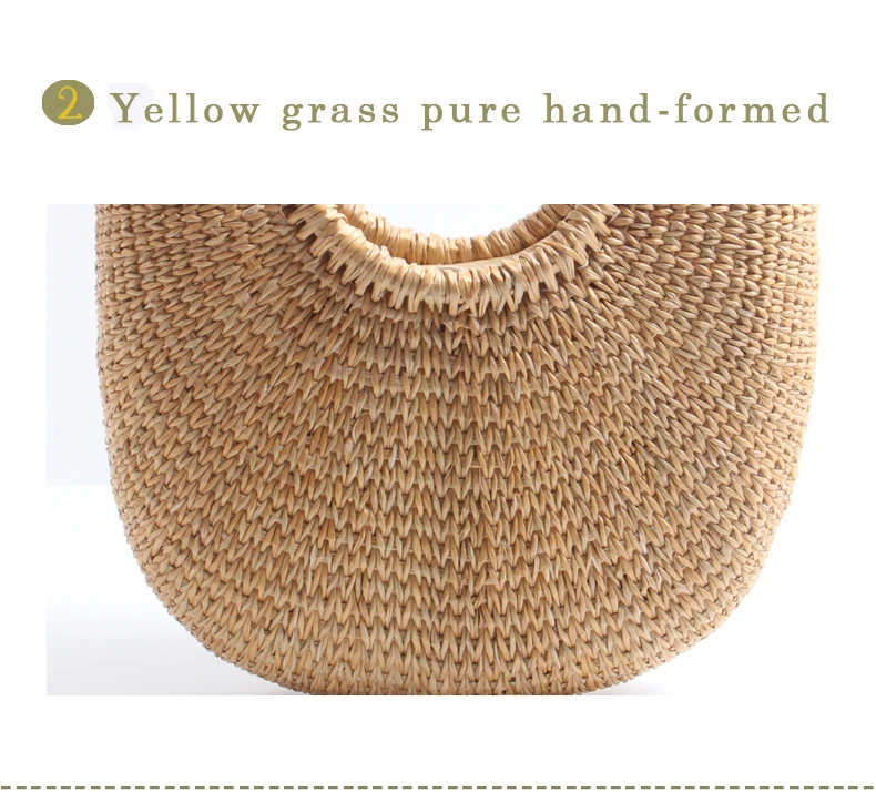 Model Number:Yellow grass woven bag semi-circular handbag