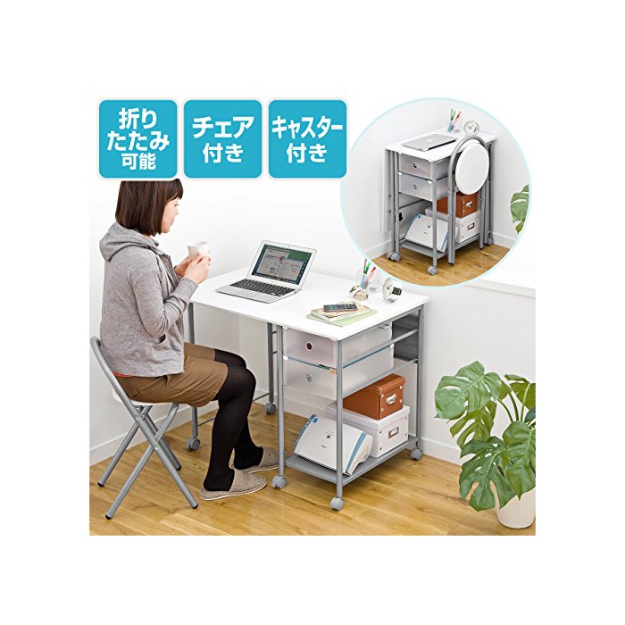 원본상품명: サンワダイレクト 折りたたみデスク チェア付 幅90cm ?行き58cm パソコンデスク ホワイト 100-DESK028W parent