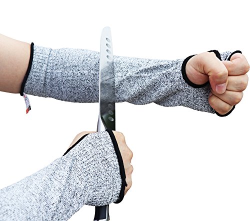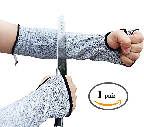 XHSJ Cut Resistant Knit Sleeves Level 5 Protection Slash Resistant Sleeves with Thumb Slot Helps Prevent Scrapes Scratches Skin Irritations UV-Protection 1 Pair