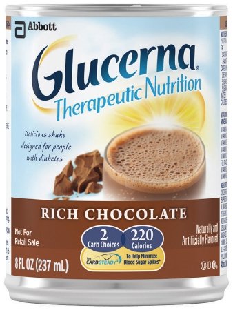 -. Feature : GLUCERNA SHAKE contains a unique blend of slowly digested carbohydrates that has been clinically shown to produce a lower blood glucose response compared to a standard medical nutritional beverage. / GLUCERNA SHAKE is a good choice for patients who are trying to manage their blood glucose levels and weight. / For patients with diabetes or abnormal glucose tolerance / For use as an oral supplement in conjunction with a diabetes meal plan