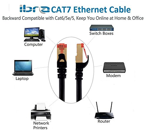 IBRA® 10 Feets CAT 7 RJ45 Ethernet LAN Network Cable - High Quality / LAN CAT7 (Advanced) / 10Gbps 600MHz / S/STP Molded Network / Gold Plated Plug STP wires / Ethernet Patch LAN Router Modem / Black Round - 3M/10 Fts
