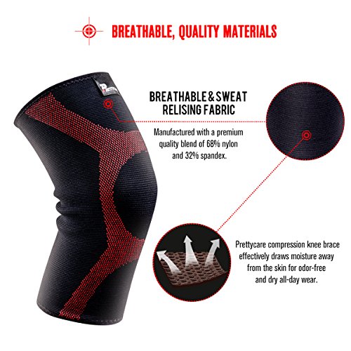 - ★BREATHABLE, QUALITY MATERIALS: Manufactured with a premium quality blend of 68% nylon and 32% spandex, Prettycare compression knee brace effectively draws moisture away from the skin for odor-free and dry all-day wear.
