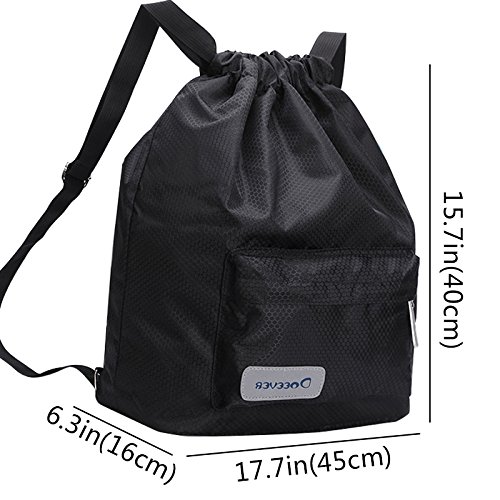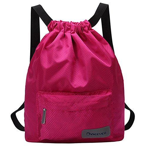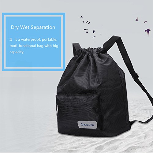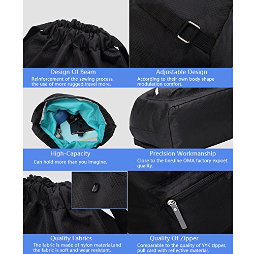 Product Description DESIGN - There are two pockets in the inside bag to store dry and wet things respectively, one of them is EVA water proof inner pocket design, make sure to separate wet things from the dry things and impermeable. - The Night-Luminous design increase the security when you take it out for a running or other sports at night. - The materials are light weight and abrasion resistance, makes the bag durable and long lasting. - The drawstring closure design makes bag stronger, it also has fine details and good workmanship. - Adjustable straps on the bag provide you a more comfortable experience while using the backpack. FUNCTIONS - The capacity of the bag is large enough to take a set of sports equipment and smart phones, power banks and so on. - The bag is very useful especially when you go to a beach or swimming pool. You can store wet clothes in the EVA water proof pocket to make sure it will not permeate to the dry pocket and it is convenient to store both dry and wet things together in one bag. 0