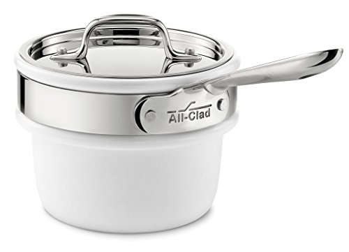 Double boiler with 2-Quart Copper Core sauce pan and 1.5-Quart porcelain insert; gently transfers heat for expertly melting chocolate, making custards, or cooking delicate sauces