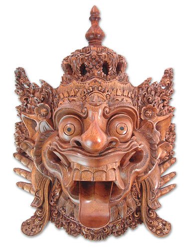 NOVICA Decorative East Meets West Large Acacia Wood Mask, Brown, 'Baruna God Of The Sea'