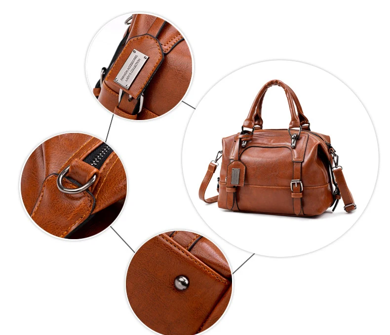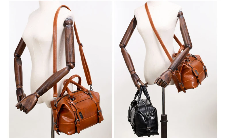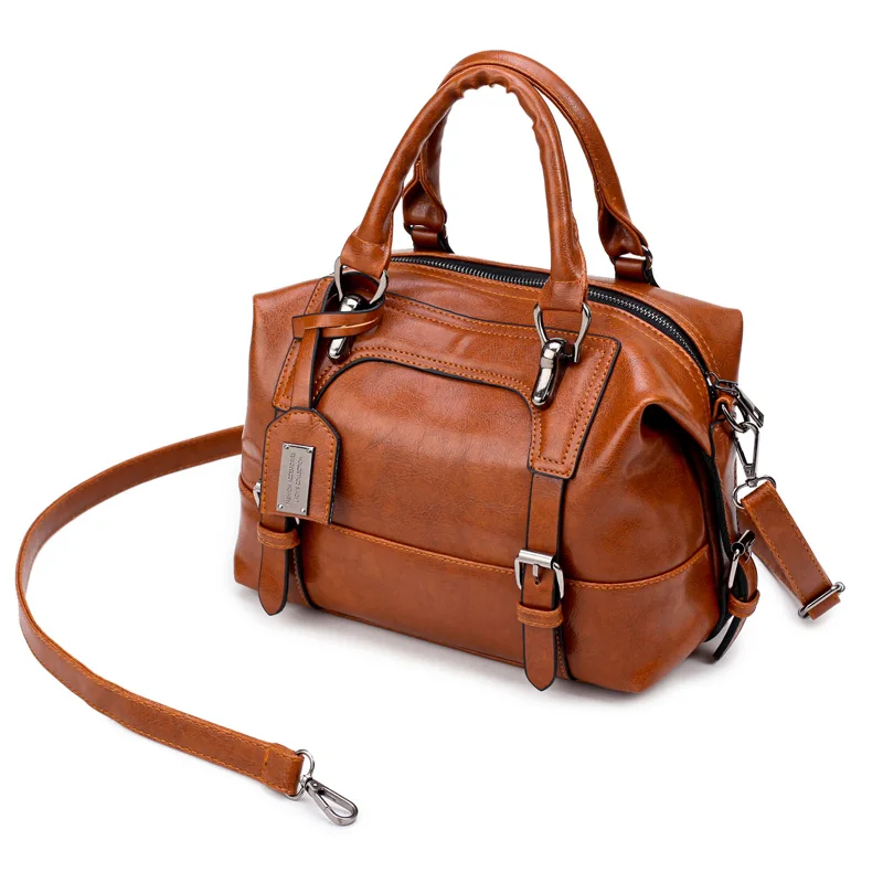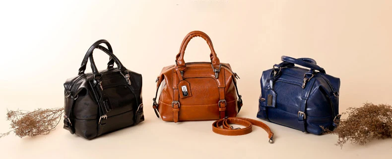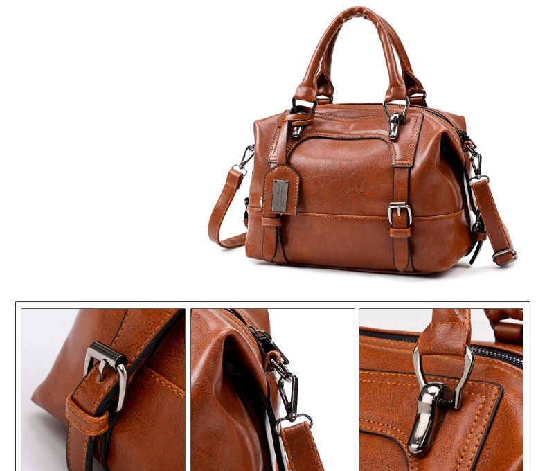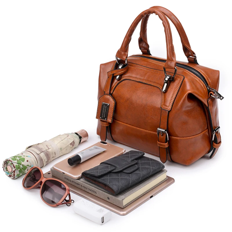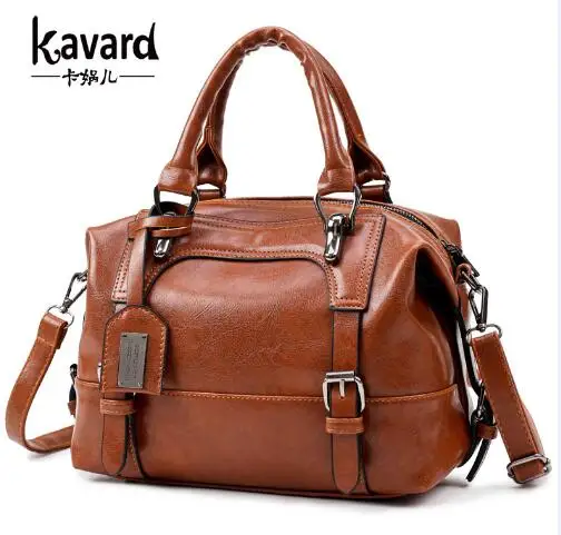 PU leather handbag sac 2016:wax oil leather bag shoulder ladies hand bags