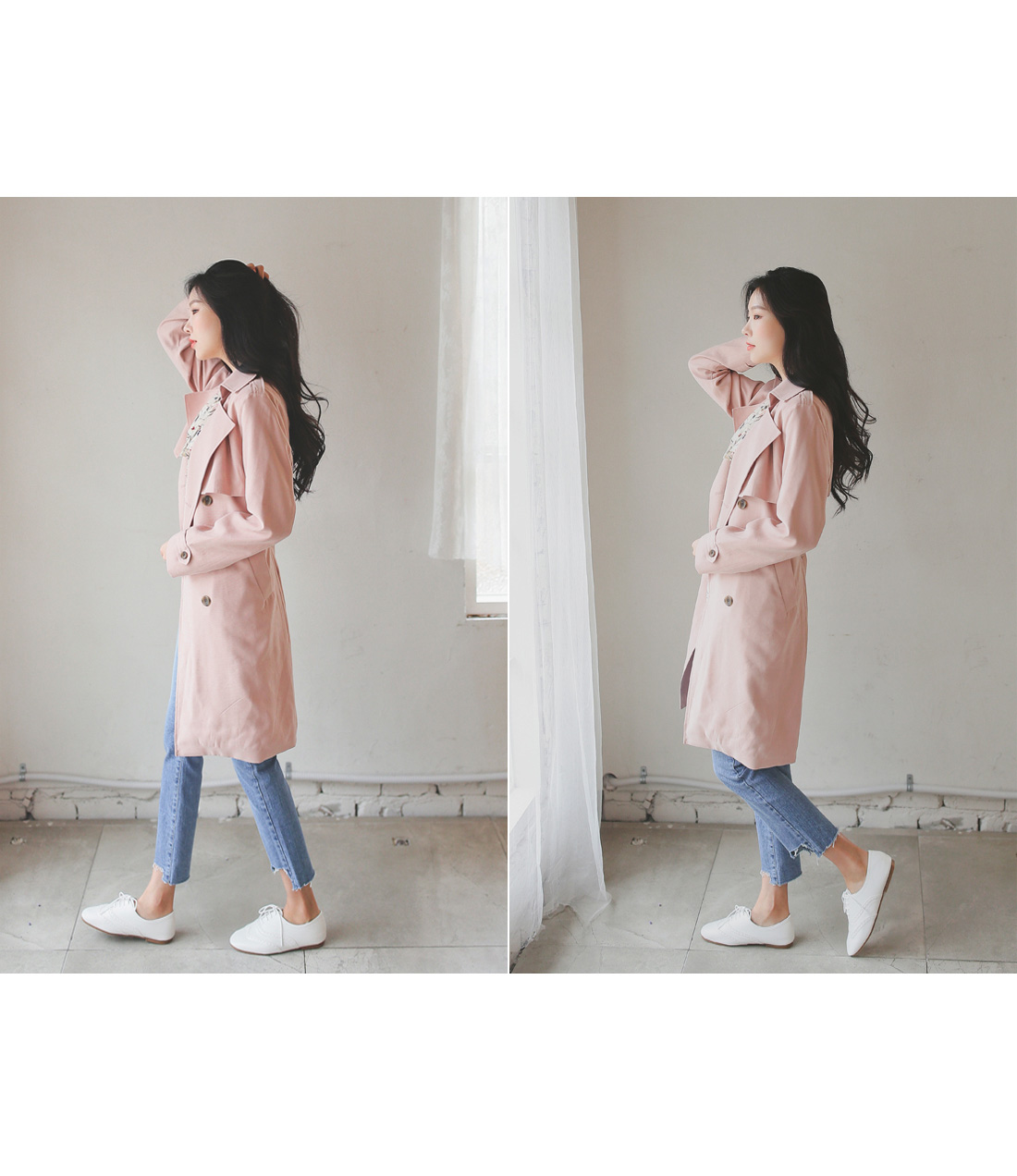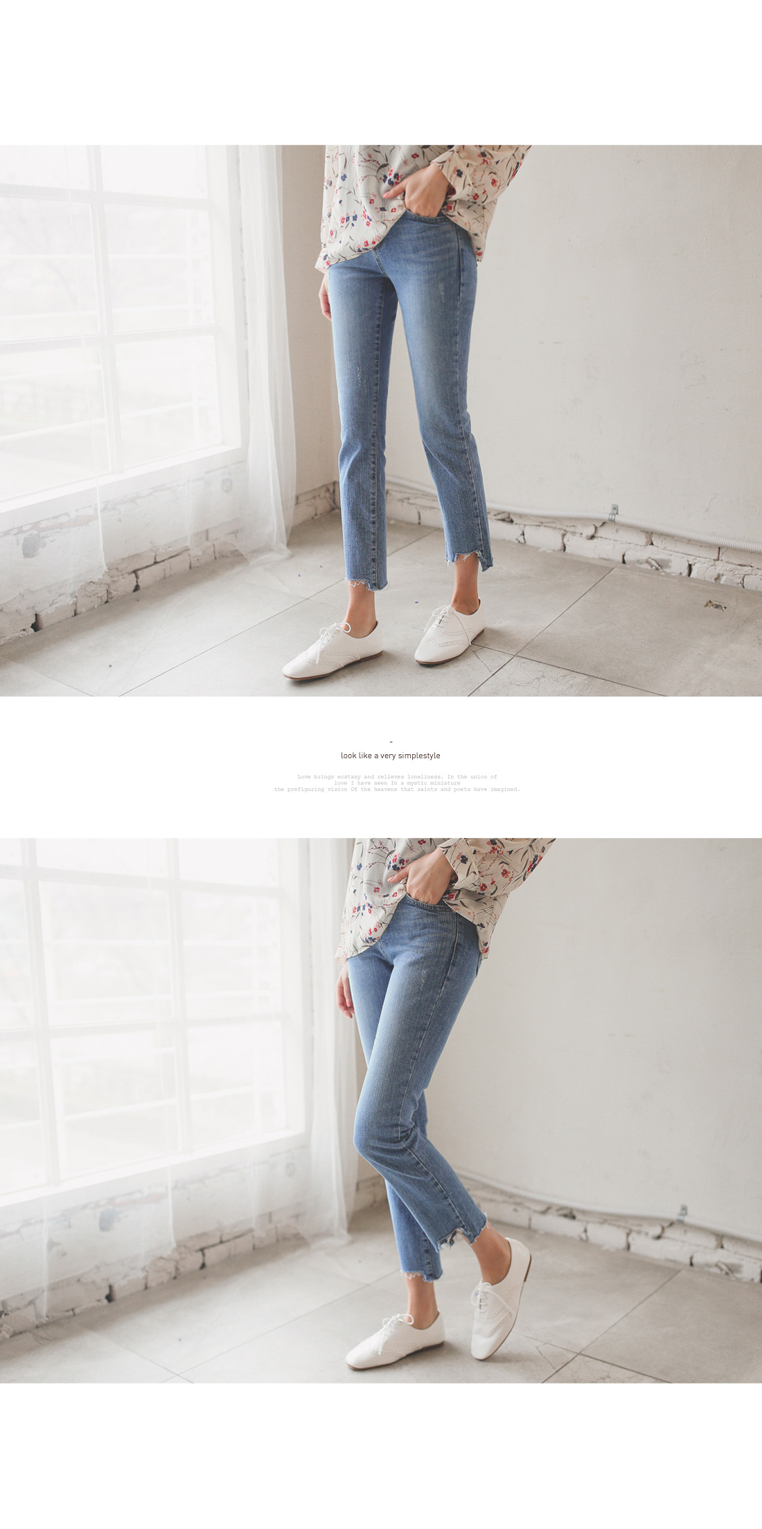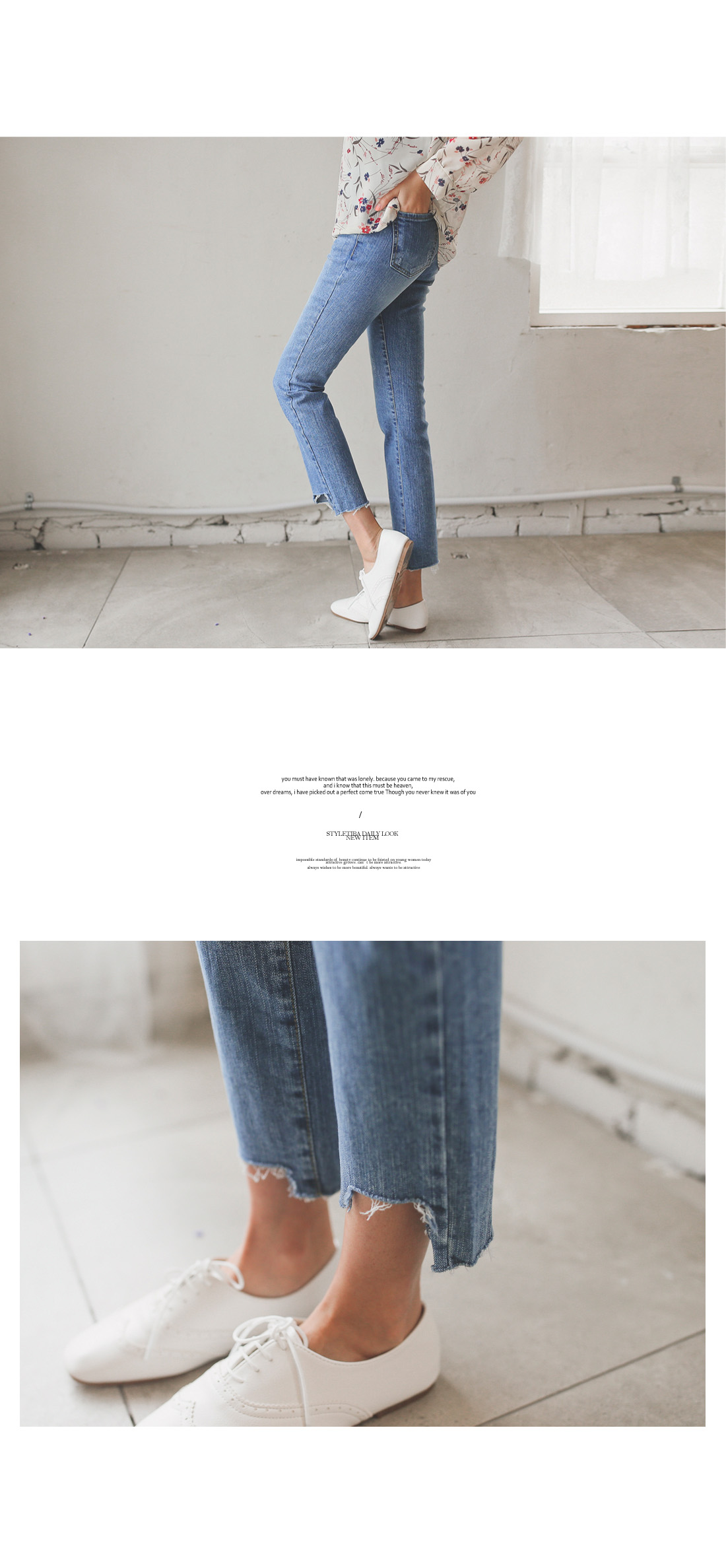 일자핏으로 떨어지는 라인이 다리라인을 더욱 길고