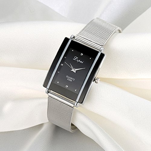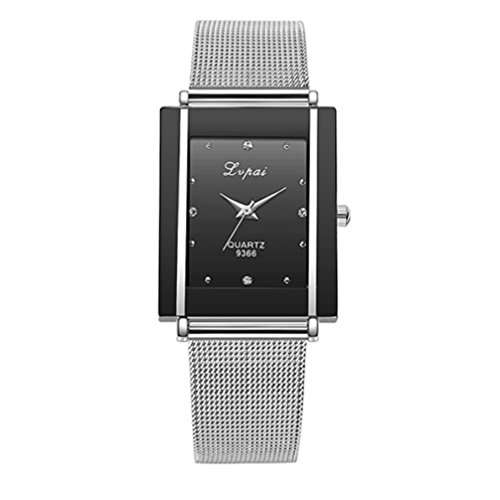 -. Title : Lvpai Unisex Rectangle Dial Stainless Steel Mesh Strap Quartz Wrist Watch - Black