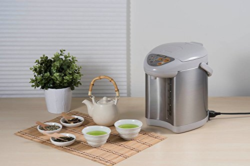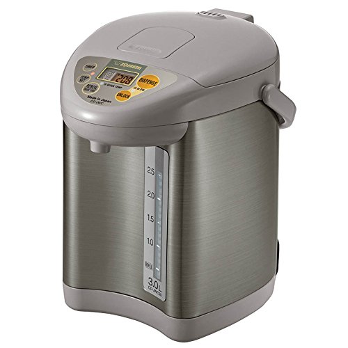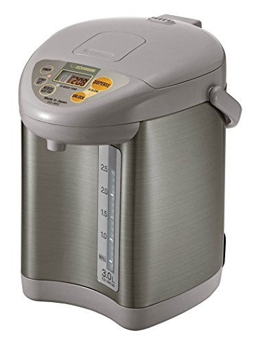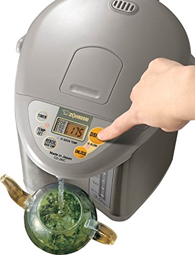 Studio : Zojirushi Publisher : Zojirushi Binding : Kitchen Product Description Zojirushi Micom water boiler and warmer has three keep warm temperature settings at 175 DegreeF, 195 DegreeF and 208 DegreeF. Direct (optional) quick temp mode reaches 175 DegreeF or 195 DegreeF to keep liquids warm directly without reaching a boil. Micro computerized temperature control system. Convenient electric dispensing system. Energy-saving timer feature (6-10 hours). dechlorinate and descaling mode. Multiple safety features: removable magnetic power cord, safety auto shut-off when there is no water, automatic dispense-lock. Easy-to-use control panel with LCD display. Displays actual water temperature at all times. Easy-to-clean nonstick interior. Cafe drip dispensing mode for slower dispensing. Swivel base for serving convenience. Sturdy fold-down handle allows unit to be easily transported. Detachable lid. Bpa-free (all surfaces that come into contact with food or beverage). 0