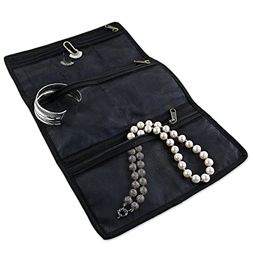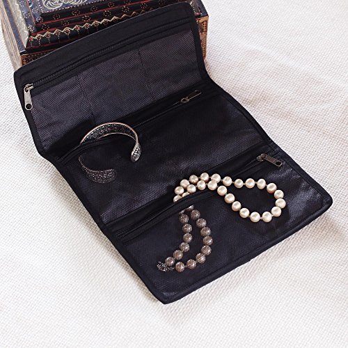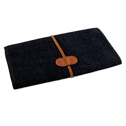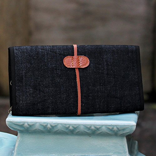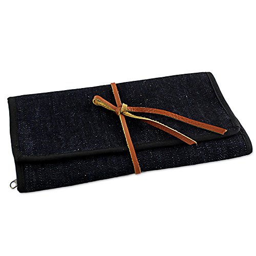 About this item: Craftsmanship truly is a family trait for Thai artisan Chaloemphon, whose wife creates this handy cotton jewelry roll. The dark blue travel case rolls up into a convenient size and ties with a leather strap. On the inside of the roll, six zippered pockets made of black nylon mesh allow for easy storage of different sizes of jewelry. Folded: 4.7" H x 8.5" W x 0.8" D Unfolded:13.0" L x 8.5" W