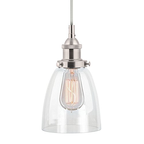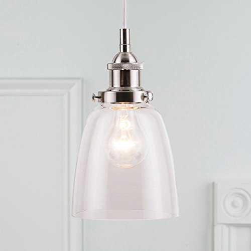 Linea di Liara Fiorentino Brushed Nickel One-Light Industrial Factory Pendant Lamp with Clear Glass Shade LL-P281-BN