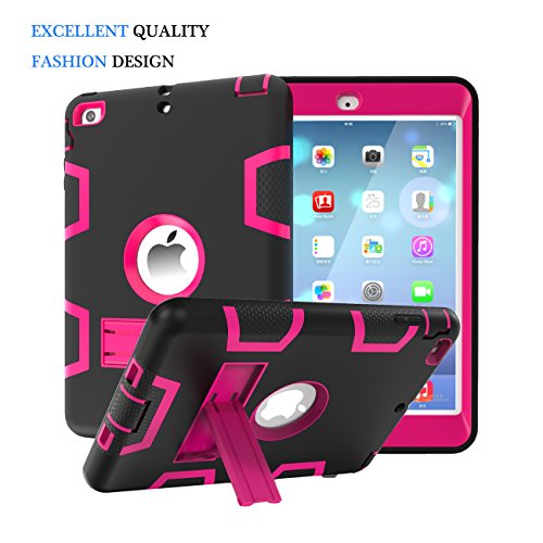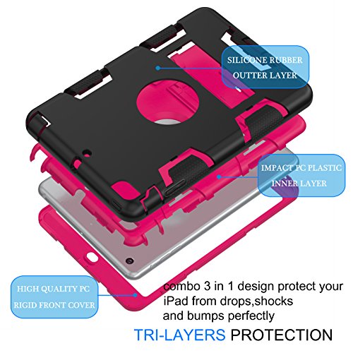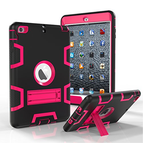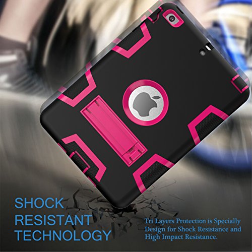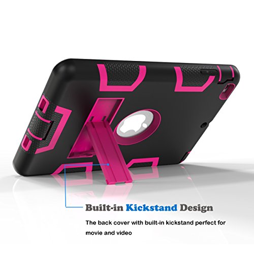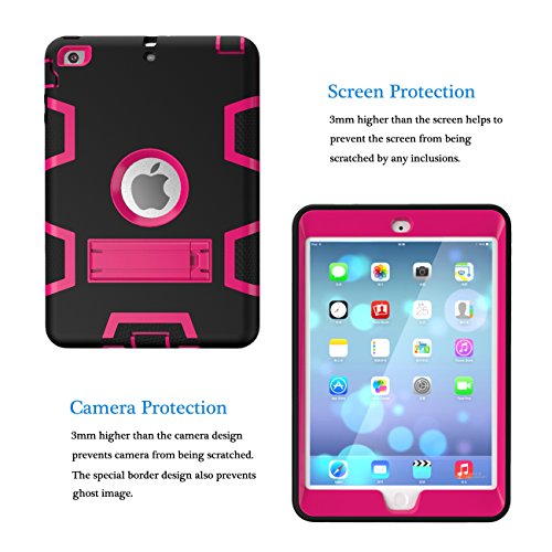 iPad Mini Case, iPad Mini 2 Case, iPad Mini 3 Case, Tekcoo [Troyal HY] Hybrid Shock Absorbing Defender Rugged Silicone Hard Case Full Body Protective Cover For Apple iPad Mini 1/2/3 [Black/Rose]