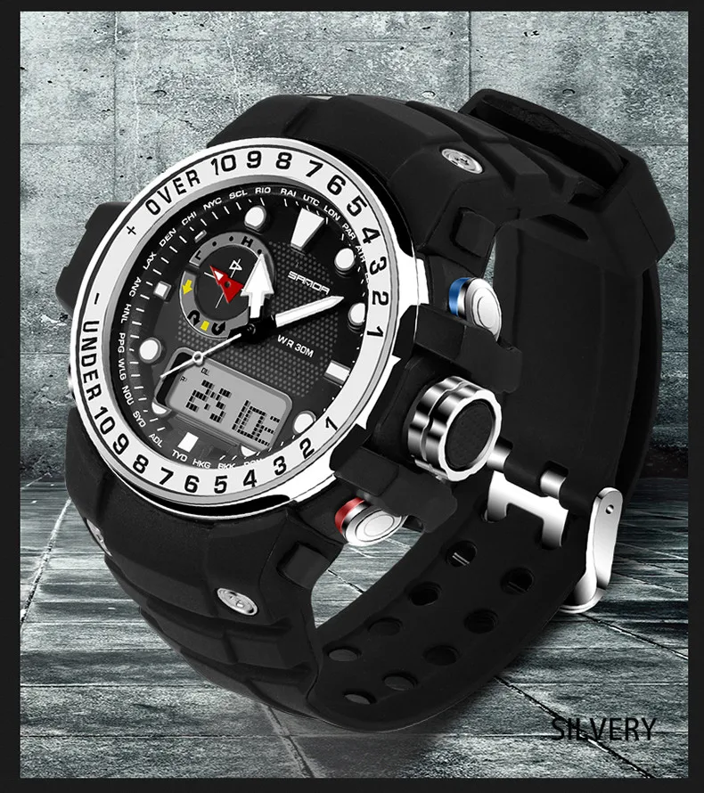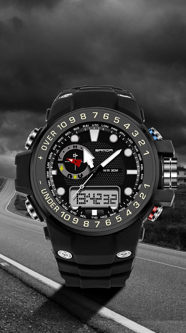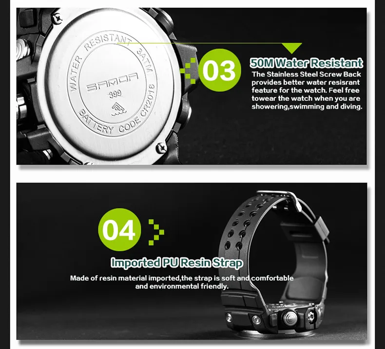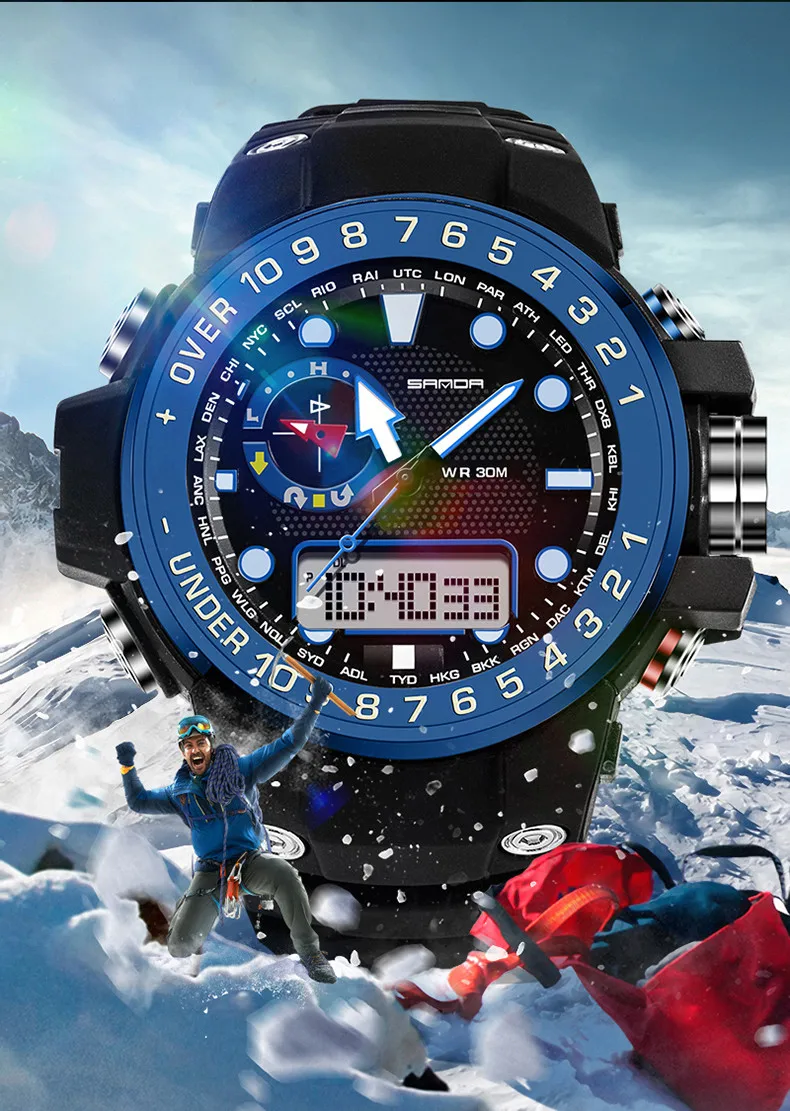 Feature:Water Resistant,LED display,Multiple Time Zone,Back Light,Complete Calendar,Shock Resistant,Diver,Chronograph,Auto Date,Alarm