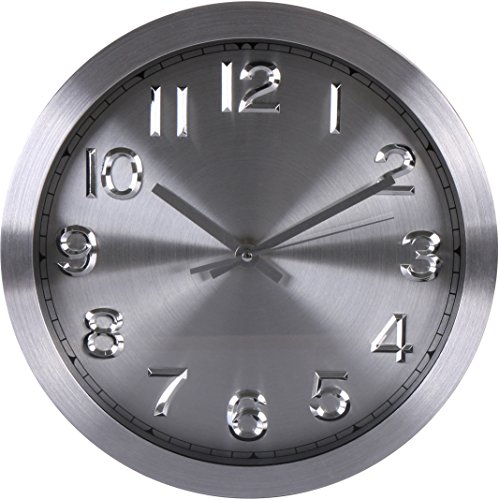 The Top of the Line Decorative Silver Dial Wall Clock This aluminium-framed simple and silent 12 inches round clock features a silver profile with a classic dial, ideal for any wall. You can hang in your office for a simple touch, or in the living room to create a modern atmosphere with the utmost precision. This wall clock guarantees accurate time throughout its life with the average battery lasting more than 1 year. The aluminium frame is solid and sturdy giving it a classic look. The simple yet elegant design boasts a finish that is well suited for virtually any room decor. The back has a nail slot which ensures easy installation. Powered by one AA battery (not included). Please use average carbon battery, instead of high duty batteries. The large numbers are clear to read and the front glass cover guarantees crystal - clear view. The contemporary style with silver dials and black numbers also makes it easier to read. To further enhance your experience, the wall clock comes with silent ticking function which ensures a good night's sleep or a relaxed working environment. 0 |