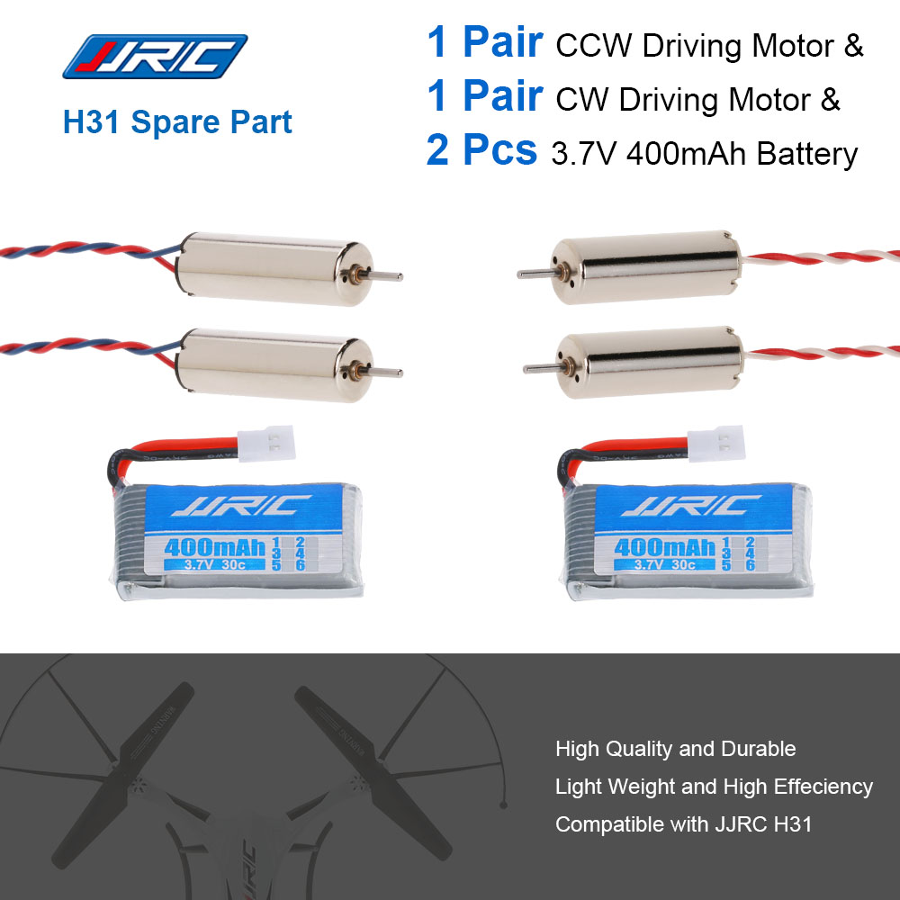 This original JJRC H31 accessory package including 2 pcs CW driving motor, 2 pcs CCW driving motor and 2 pcs 3.7V 400mAh Li-Po battery for JJRC H31. Best quality from original JJRC factory.