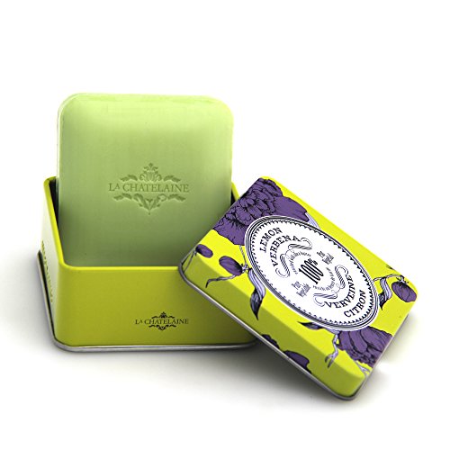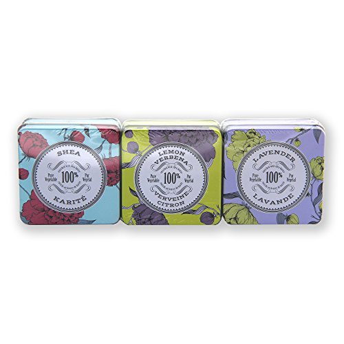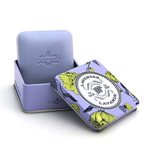 This stylish collection of French natural soaps is designed to pamper your loved ones. La Chatelaine 100% pure vegetable-based triple milled soaps are hand-crafted in Provence using only the finest ingredients. They are blended with organic calendula extract to gently soothe and relieve sensitive skin. Enriched with organic shea butter, our gift soaps do not dry out the skin but leaves skin feeling soft, moisturized and radiantly healthy. Our luxurious formula offers a dense long-lasting bar with a wonderful rich and creamy lather that will seduce any member of the family and is gentle enough for all skin types. La Chatelaine designed this elegant and popular collection of natural soaps inspired by the warm colors of Provence and contemporary style of today. All of our scents are phthalate free and made from botanicals harvested in the French countryside and distilled by distinguished perfumers in Grasse France. Our soaps are paraben, SLS, phthalate, and BHT free. They are vegan and free of gluten, soy or GMO's. Elegant tins will keep your soaps protected when traveling and can be used long after for sentimental keepsakes. Ideal for gift giving or simply to pamper yourself. No need to gift wrap, packaged in a chic embossed reusable tin.Feature