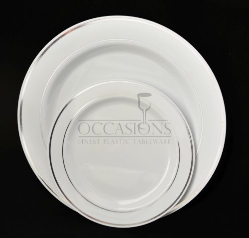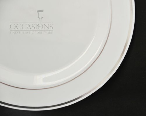 " OCCASIONS " 40 PACK, Heavyweight Disposable Wedding Party Plastic Plates (10.5'' Dinner Plate, White / Silver Rim)