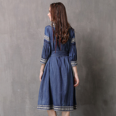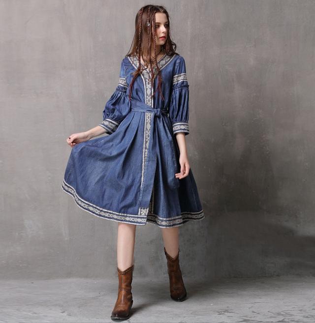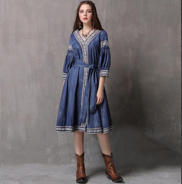 秋物デニムワンピース 2018トレンド レディース 刺繍入り ラウンドネック ブラウス ピンク 長袖 ボヘミアン デニム柄 ベルト付き Oネック Aライン マキシ ワンピース ブルー ノースリーブ フリンジ ボヘミアン ボヘミアン調 エスニック レトロ 刺繍ワンピ ボヘミアン柄 ガウン風ワンピ デニムワンピ 民族衣装 ヒッピースタイル ゴシックアイテム ほんのりダークファッション センシュアル ゴシック風コーデ センシュアル レトロファッション レトロコーデ ワンピース大好き クラシカルなフォルム コンシャス ラグジュアリー オールブラックでドレッシー ブラックのオールインワン ゴシック モノトーンコーデ 毒っ気 パープル 民族風 ヒッピー 映画女優 体型カバー 送料無料 おしゃれ 2018新作