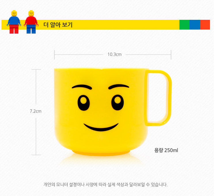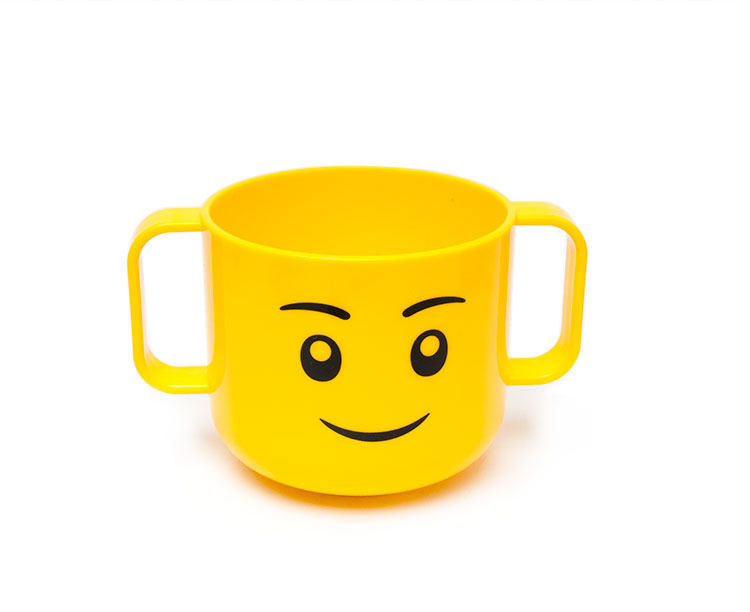 5.笑脸杯设计相当人性化,可爱的乐高笑脸图案,杯身圆润光滑,杯底特殊设计不易倾倒。别具匠心的双把手设计,能让孩子牢牢握住杯子,视觉上更直观,吸引孩子自己饮水。